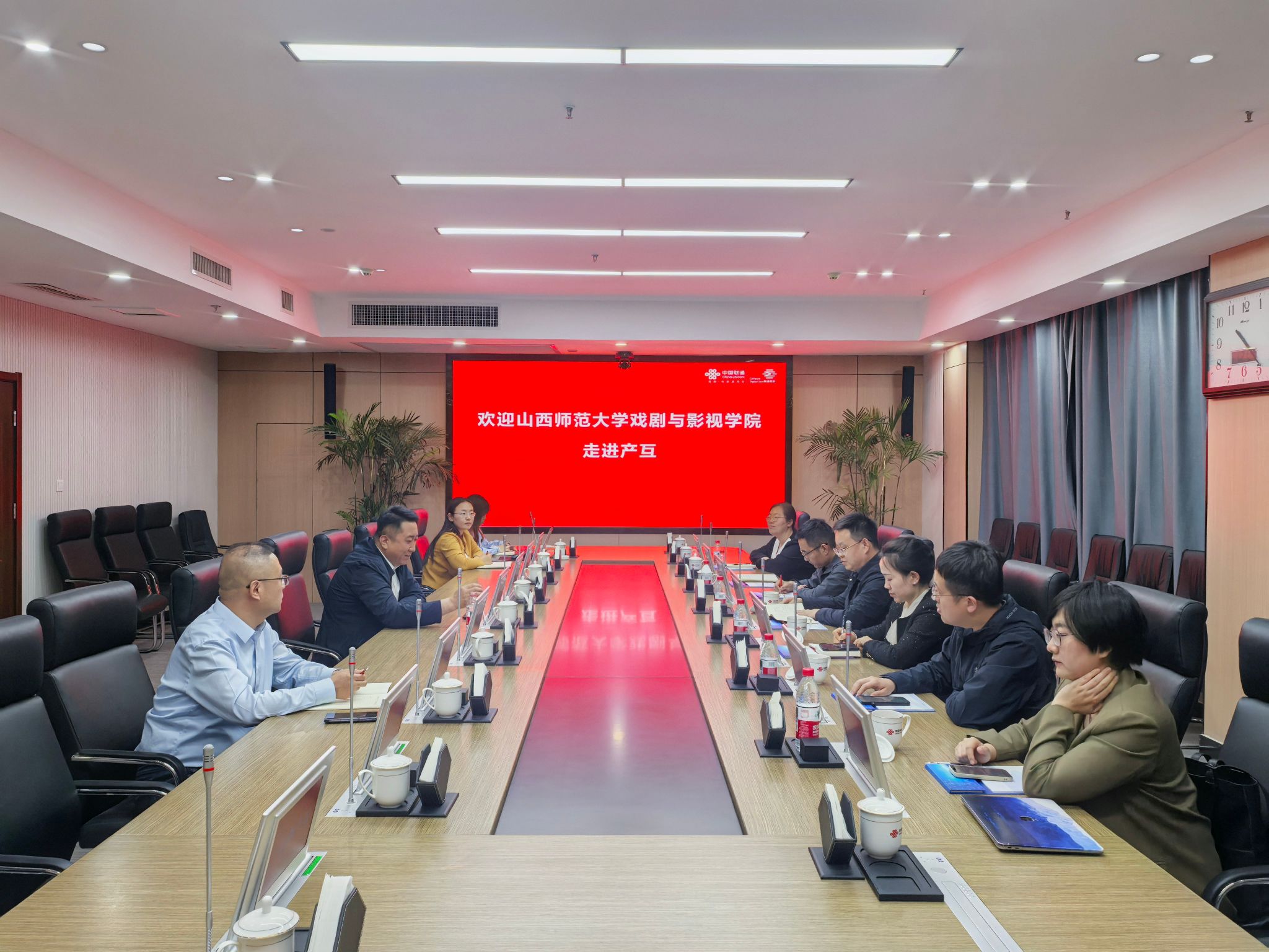 杨卫东代表联通(山西)产业互联网有限公司对王潞伟一行的来访表示热烈欢迎,简要介绍了公司的发展历程、核心业务与技术成果。他表示,公司在数字技术、文化云平台、VR/AR 沉浸式内容开发等领域具有充足的技术能力与项目经验,希望以此为契机,加强合作,服务社会转型发展。